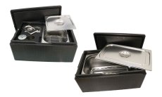 Manual freezing unit for manual freezing of up to 90 straws (0.5 ml or 0.25 ml). Styrofoam box, stainless steel container, lid, floating rack for straws; 530 x 325 x 200 mm